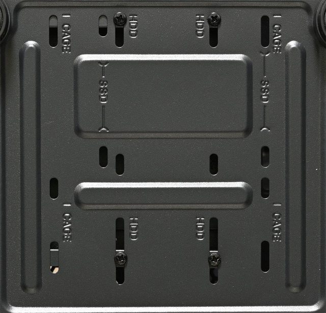▼機殼底部前方的HDD/SSD/CAGE(固定架)螺絲孔