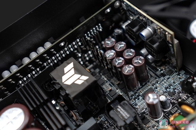內部採用高效、低 ESR 日製電容,提供 92% 轉換效率。其中的主要變壓器有放上 TUF Gam