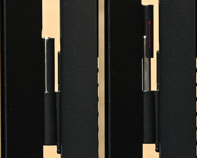 ▼頂部通風口配置可拆式網孔板,拆卸紅色箭頭手轉螺絲後可將網孔板往後移動並取下,
