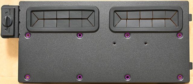 ▼右側前方擋板2個穿線開口有護套,上面有2個2.5吋裝置固定孔(紫色框)