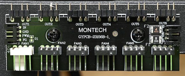 ○燈光風扇集線板提供6個3pin ARGB插針及6個4pin PWM插針,支援ARGB燈光及PWM風扇轉