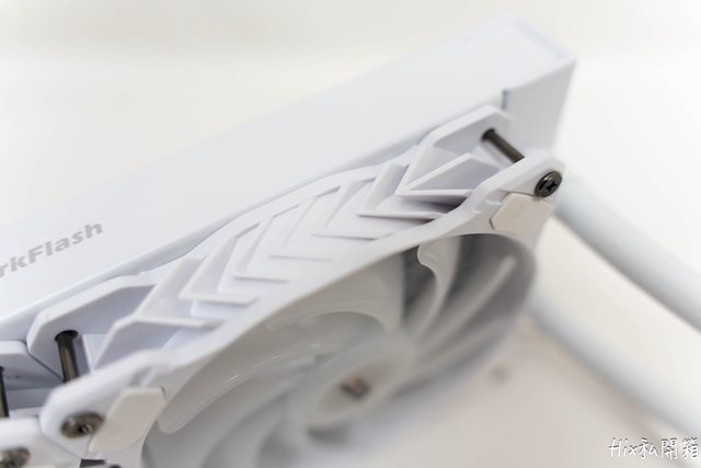 除了像藍寶堅尼尾燈的側邊圖樣外,所有冷排上的風扇四個角都有防震膠墊