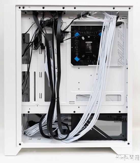 組裝完背面大概長這個樣子,基本硬體安裝完後背部整線空間應該都是夠的