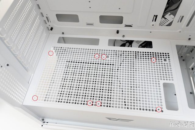 上方移除防塵網後可看到底下也是開滿圓孔加強通風
