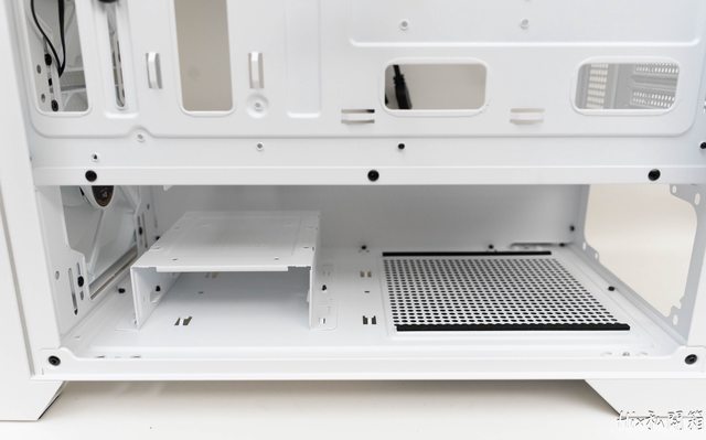 電供位有一片磁吸防塵網,這邊也能看到硬碟籠有兩個位置可作調整