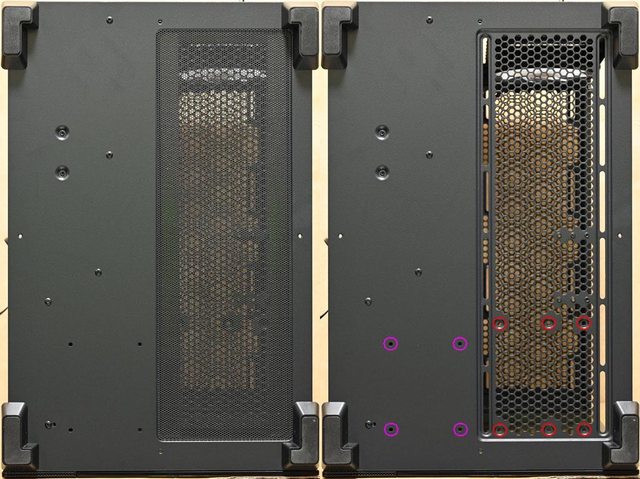 ▼左艙底部通風口長條形固定孔可裝3個120mm風扇