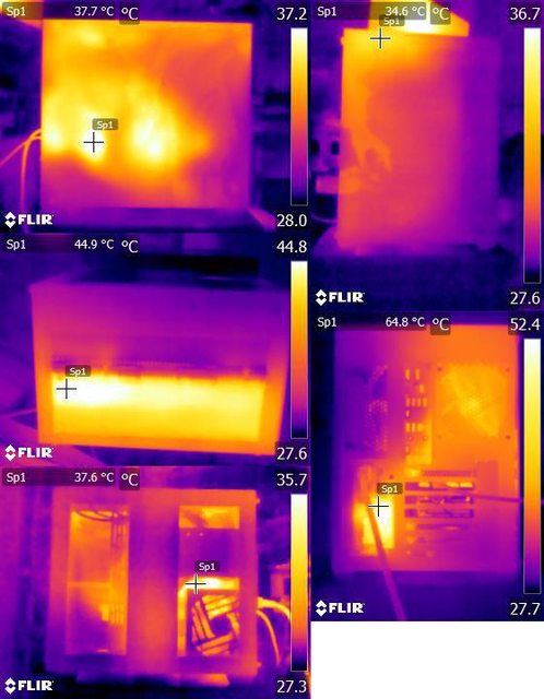 ▼風扇裝在右側前方的CPU+GPU高負載30分鐘後紅外線熱影像圖