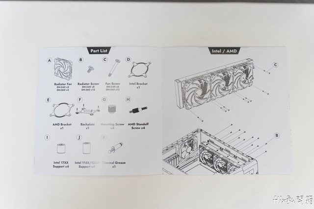 配件盒打開,AMD及INTEL用的冷頭套環都要自己裝上