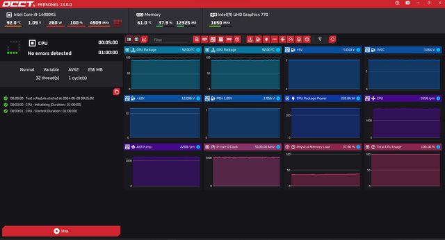 OCCT的CPU測試下也是最高溫都在90度左右