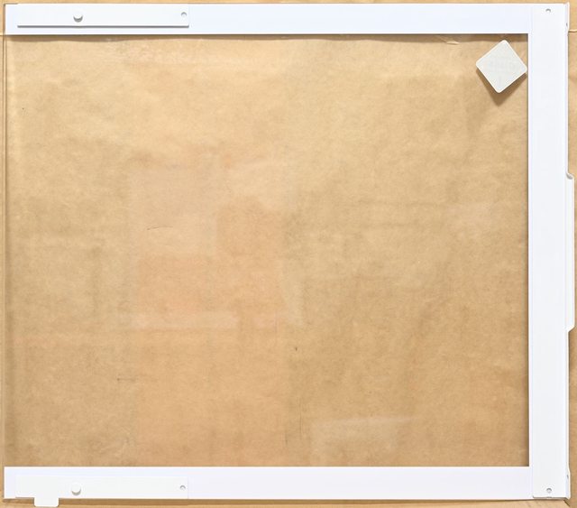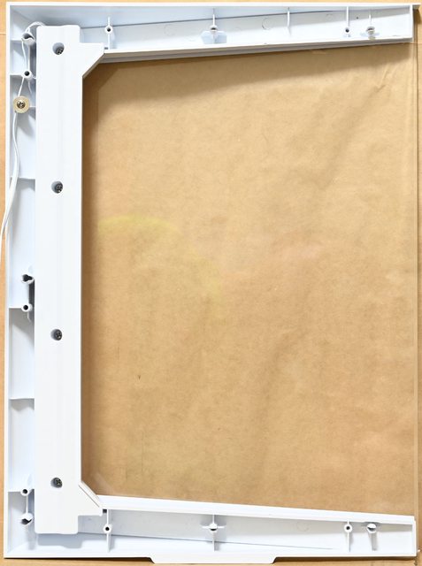 ▼左艙強化玻璃側板背面,右側長金屬條有把手及手轉螺絲固定孔,左上短金屬條有圓形