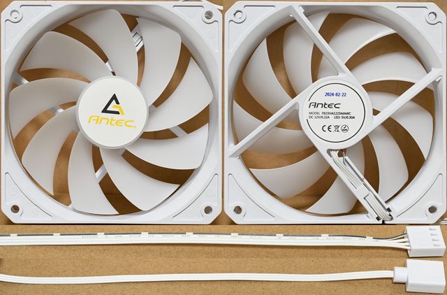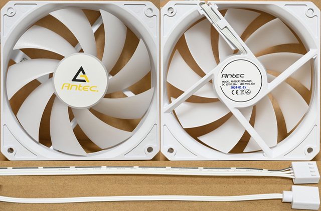 造日期、認證標誌。風扇PWM 4pin及燈光ARGB 3pin的接頭與線路均為白色