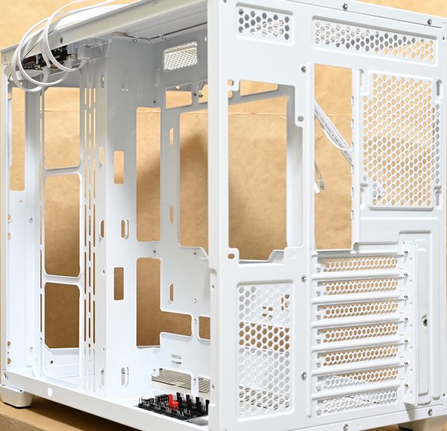 標準擴充槽,均具備可重複拆裝的網狀通風擋板,電源供應器安裝位置在右艙上方,僅提