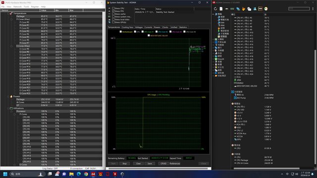 這邊可以看到在250W的條件下,使用君主水冷把149KS壓在80度上下