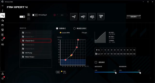在華碩AC軟體下可看到風扇轉速就是600-2200轉