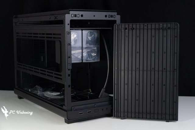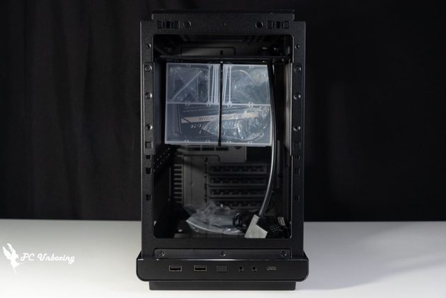 可以看到內部的安裝硬體,只是相對會犧牲機殼側面可以安裝風扇或是水冷加強散熱風流的