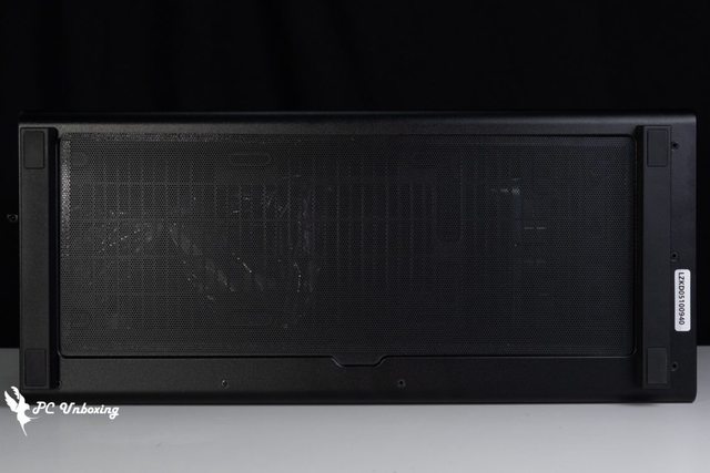 機殼底部貼有磁吸式防塵濾網,因為機殼底部預設支架可以安裝一個 2.5 吋或是 3.5 吋硬