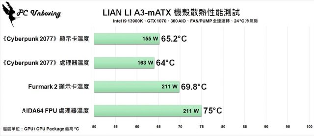 而《Cyberpunk 2077》遊戲過程中處理器及顯示卡最高溫度僅為 64 °C 及 65.2 °C,整