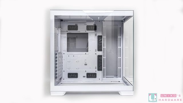 他採用雙艙式無立柱設計,最大支援到 E-ATX 規格主機板,最多可安裝 10 顆風扇,更能