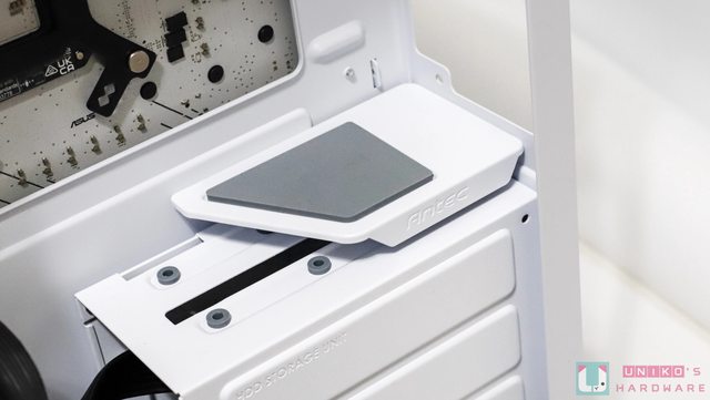 方中央位置則設有一個 3.5 吋硬碟架,可以安裝 2 顆 3.5 吋 HDD,所以這個機殼總共可