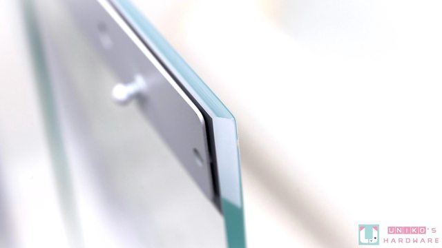 側面跟前方鋼化玻璃有個細節設計,就是在邊緣做了斜切設計,使玻璃和機殼可以更加密合