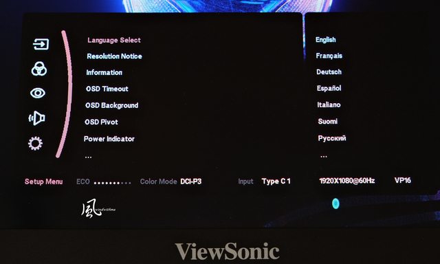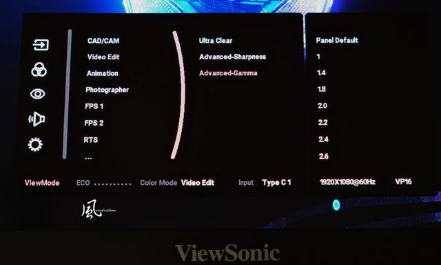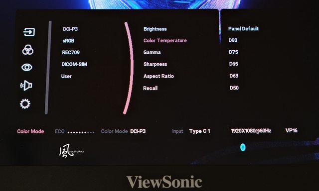 VP16-OLED與其他桌機版ColorPro螢幕同樣內建豐富OSD選項,提供使用者更自由的色彩調