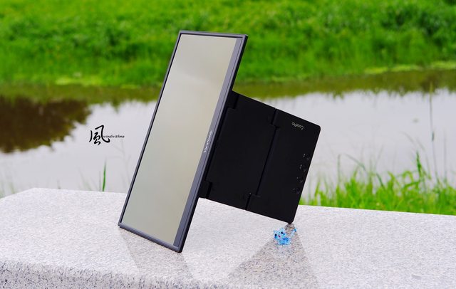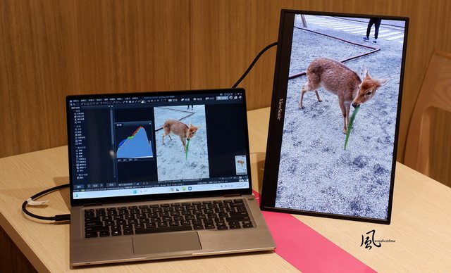 下午時段室內主要受外部陽光照射,外出使用雙螢幕編輯照片,VP16-OLED可配合直立照