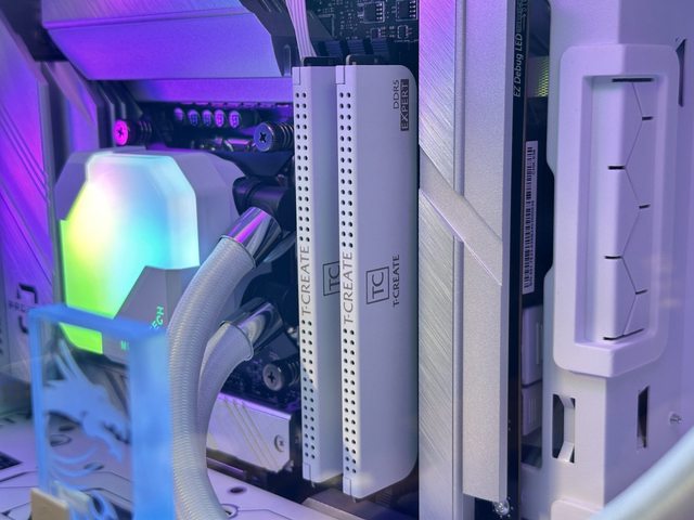記憶體使用十銓T-CREATE引領者系列DDR5 6000 16Gx2雙通道配置,純白色磨砂質感金屬
