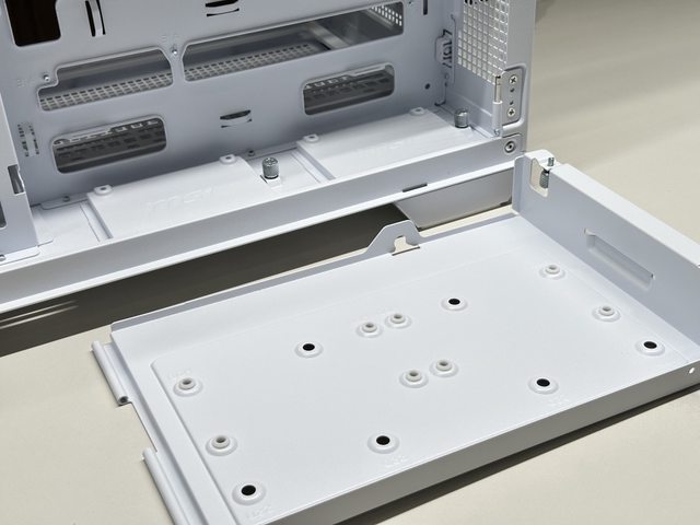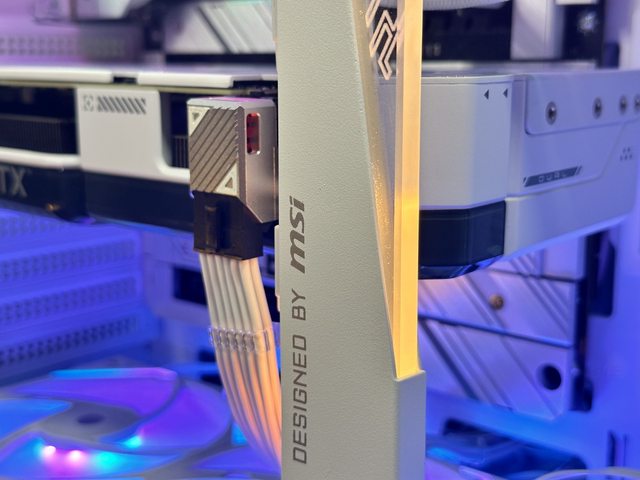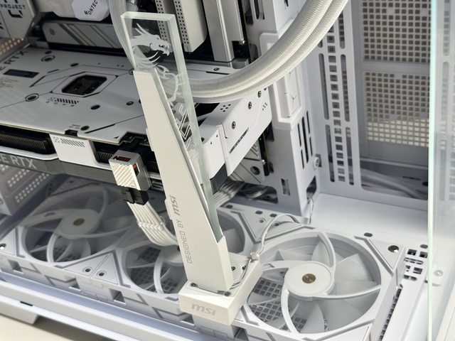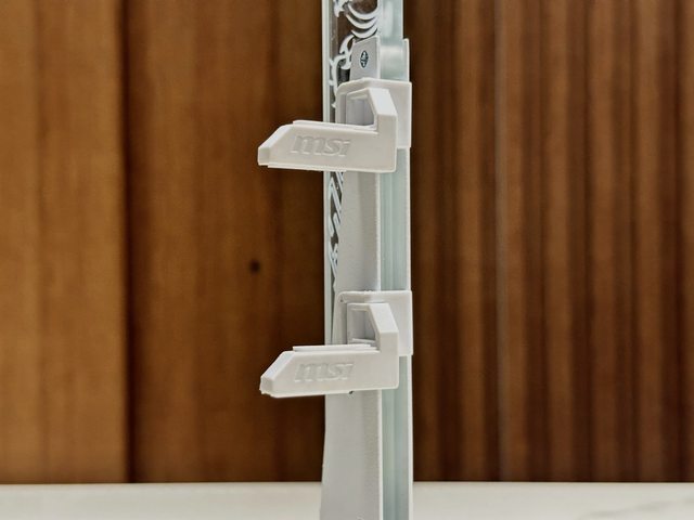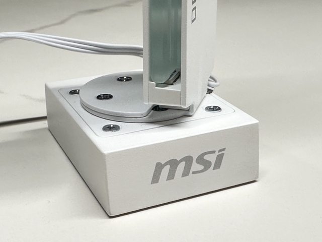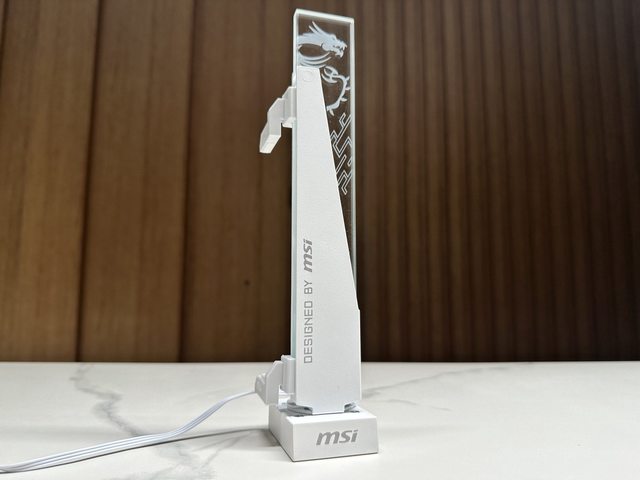 MSI MPG ARGB顯示卡支架白色版,以厚實的金屬材質搭配透明壓克力,手感相當扎實。