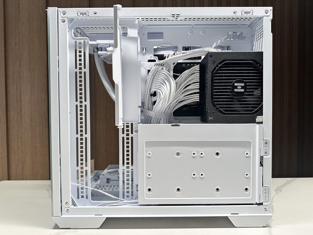 機殼出廠沒有預裝任何風扇,使用者可彈性選擇喜歡的風扇。微星將MAG PANO 100L PZ定