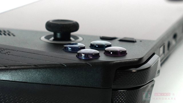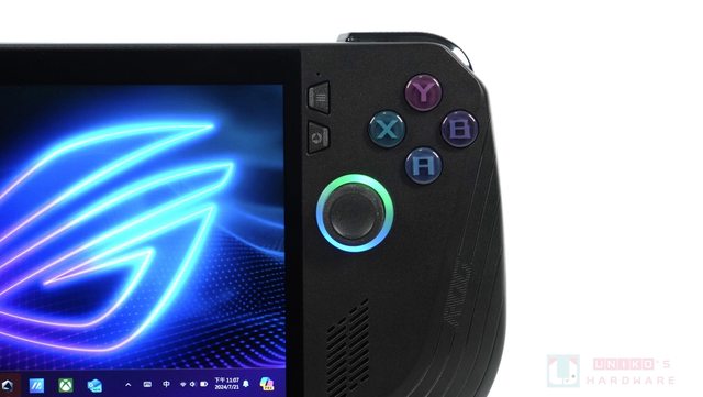 右邊類比搖桿位置沒有更動,ABXY 按鈕往下移動 4 mm,按鈕高度比 ROG ALLY 高一點點,