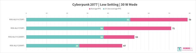 遊戲測試都是使用插電 30 W 模式,使用兩種解析度 1080P、720P,特效都設置在最低 LOW