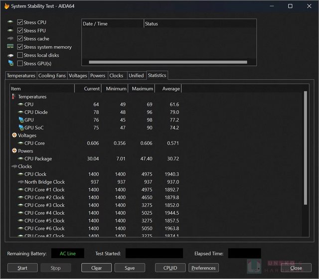 Pacckage 30 W 下,CPU die 78 度。