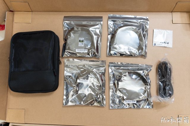 另外變壓器的插頭端以及拭鏡布也放在網袋內
