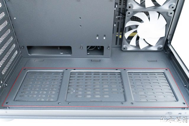 上面可安裝360水冷,下方可再加一組3入的反向扇