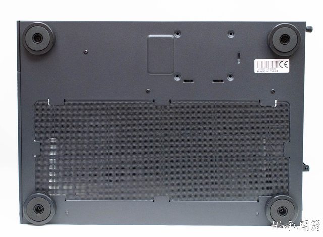 底部除了4個偌大的防震腳外,搭配了一個可拆式的防塵網(卡扣式)