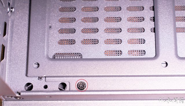 下方進風處的風扇必須先安裝在這紅框標示內的框架才能安裝到機殼上