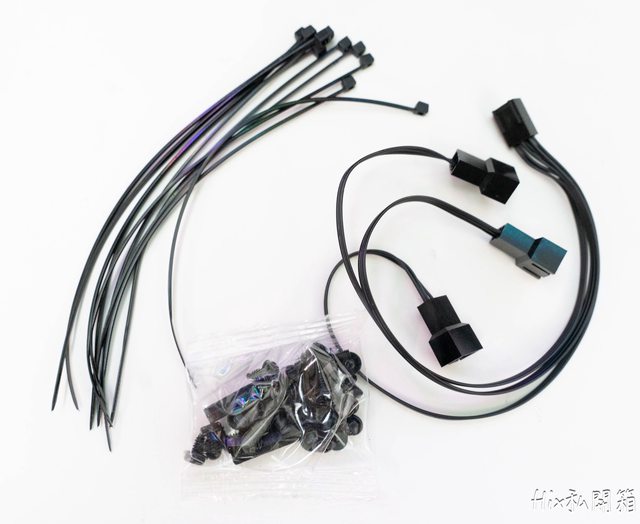 配件打開就束帶*n、螺絲以及一條一拖三的風扇延長線