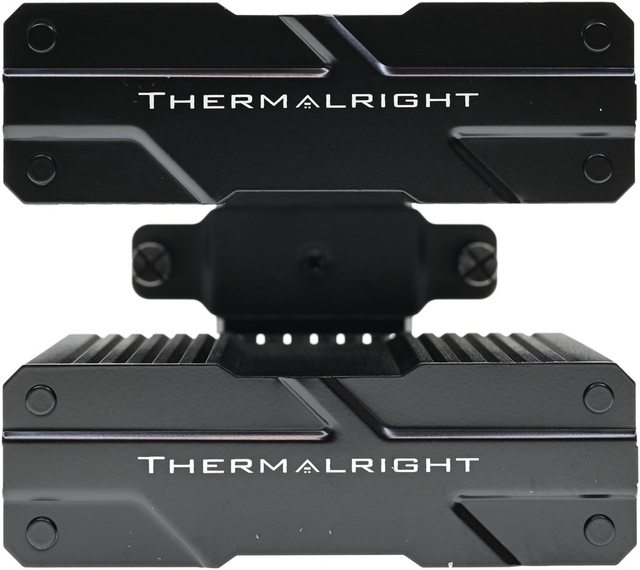 ▼從側面看,前塔及後塔下方8片散熱鰭片縮小,提供記憶體閃避空間,壓板中間用1個皿