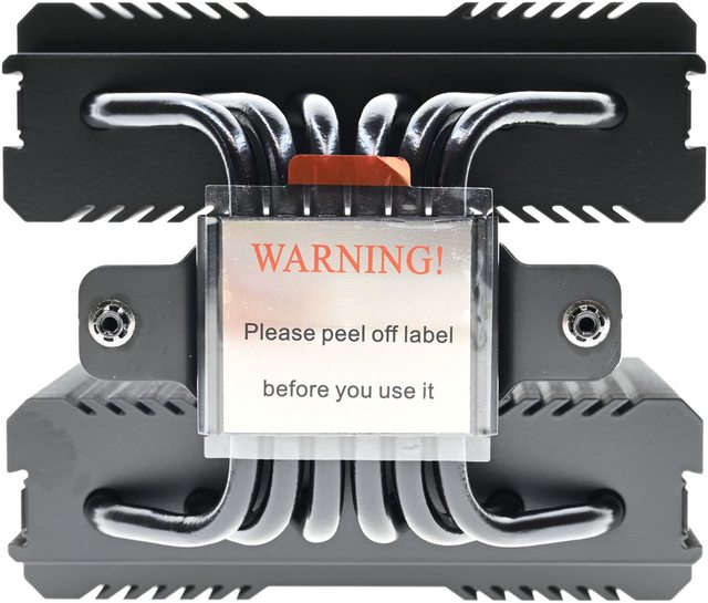 42層高密度鰭片,最下方8片鰭片裁切以閃避記憶體,熱導管與鰭片均採黑化處理,頂部