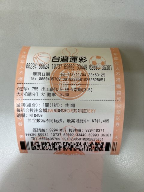 ※ 文章網址: https://ptt-club.com.tw/SportLottery/M.1699113920.A.C63