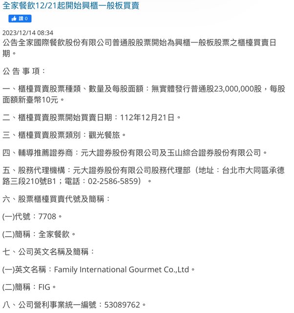 推 dbdudsorj : 全家國際餐飲 12/14 21:24
