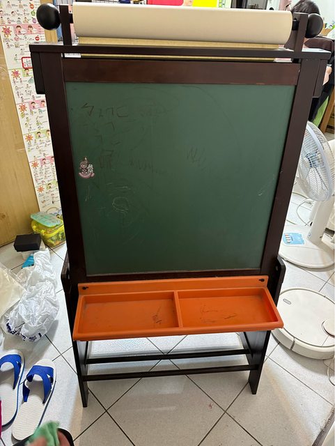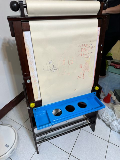 物品說明:非常多年以前購自IKEA,落地式兒童畫架,1面是白板,一面是黑板,上面是