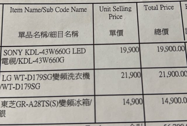 檢附當時購買的明細及價格供參考