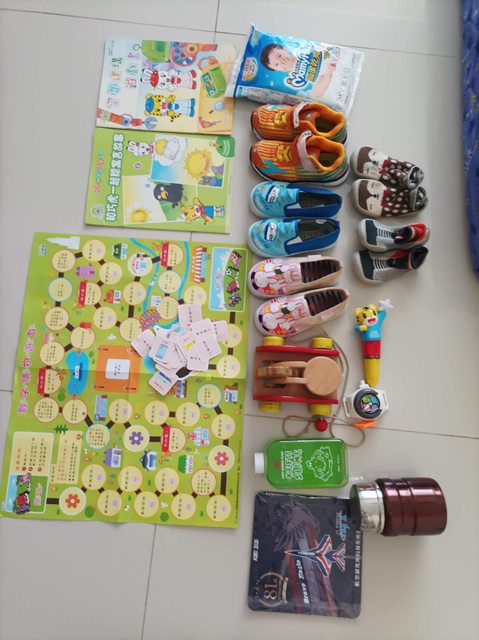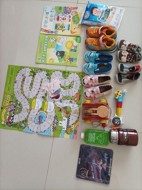 物 品:二手幼兒鞋3雙、過期M尿布試用包,1歲以上二手幼兒衣服粗穿、液態史萊姆,巧