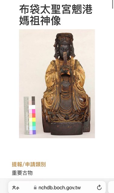 身體較長,且座椅較小。冕疏有七條,若清朝神像時已封天上聖母,應為九條。