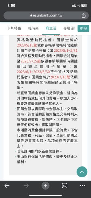 標題Re: [情報] 玉山e卡 4/1-12/31新權益 大致未變?