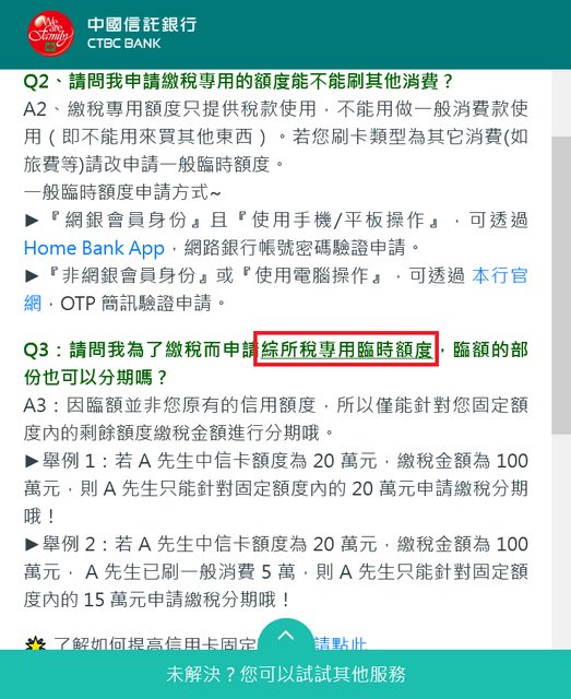 為了不想讓稅款把額度撐高,這幾年銀行都長出個「綜所稅專用額度」的名目