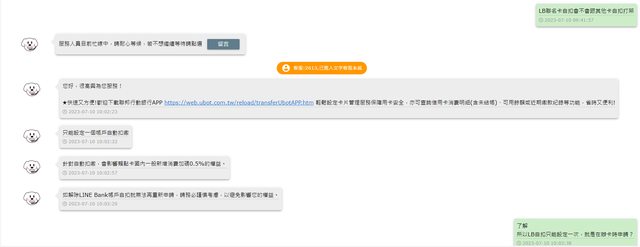 → BabyWolf : 由LINE Bank回饋至正卡持卡人於LINE Bank開立之主帳 07/10 12:25