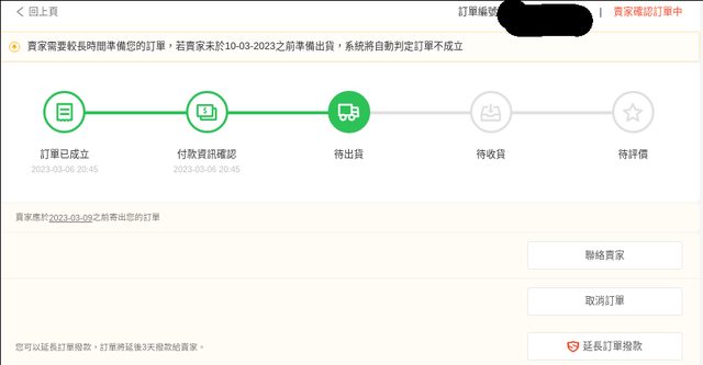 若賣家未於10-03-2023之前準備出貨,