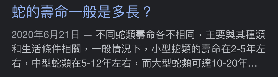 student81122: 所以蛇的壽命只有兩年喔… 08/06 11:29